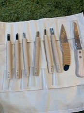 彫刻刀6本(平丸9mm、印刀9mm、丸刀3mm、丸刀6mm、丸スクイ9mm、三角4.5mm)